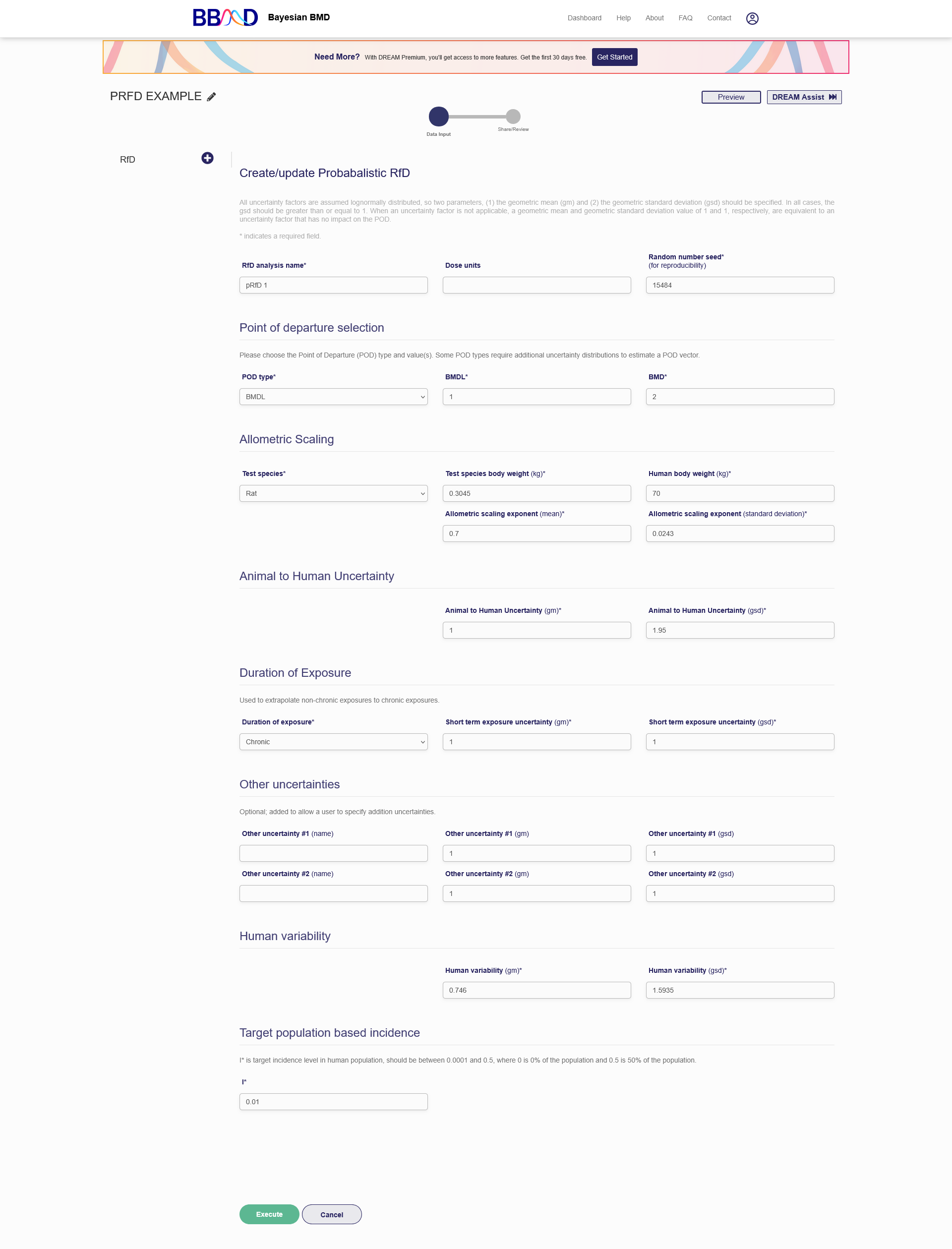 Click the “Execute” button to execute the RfD analysis using the settings just specified.